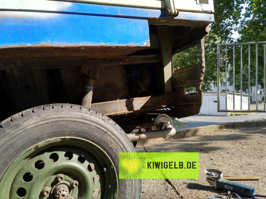 Nachdem viel altes Blech rausgeschnitten wurde Kam neues Blech rein und auch schon etwas Farbe darauf
