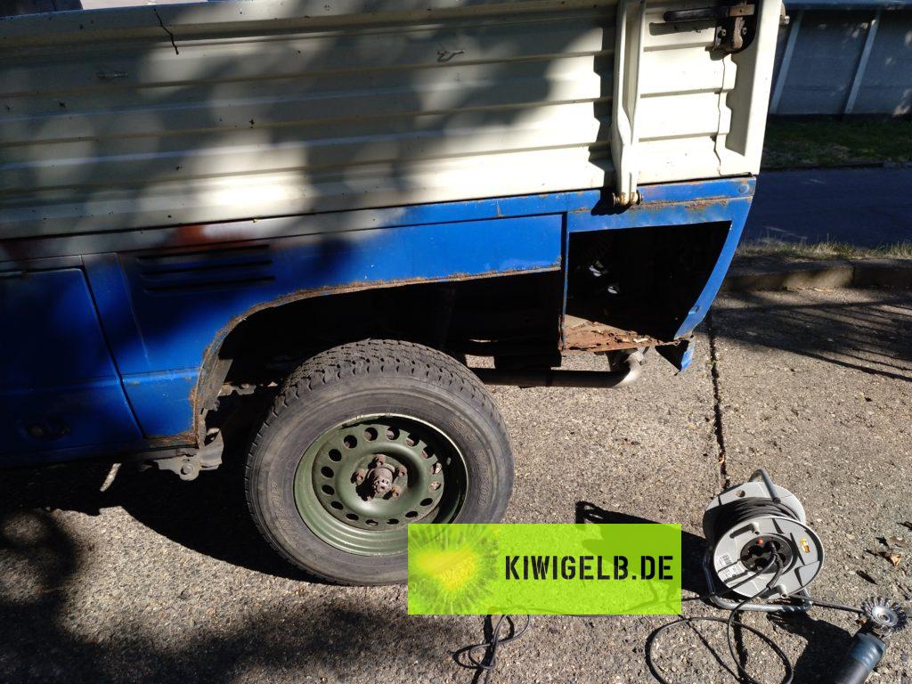 Nachdem viel altes Blech rausgeschnitten wurde Kam neues Blech rein und auch schon etwas Farbe darauf