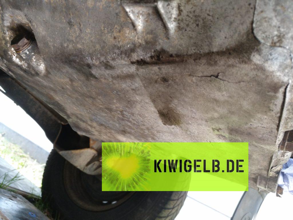 Ein Loch in der Ölwanne, das hab ich beim Putzen wohl übersehen. Das Pleul, welches unter der Wasserpumpe rausgekommen ist,